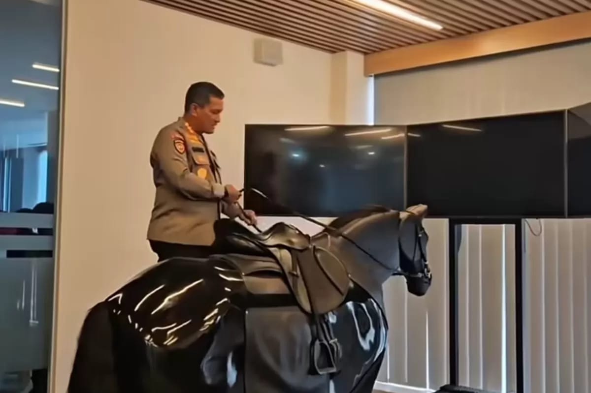 Jakarta, DizOne News — Fasilitas simulator berkuda milik Kepolisian Republik Indonesia menjadi perbincangan di media sosial setelah video penggunaannya beredar luas. Dalam video tersebut terlihat personel Polri menggunakan alat simulator yang menyerupai kuda untuk latihan menunggang.