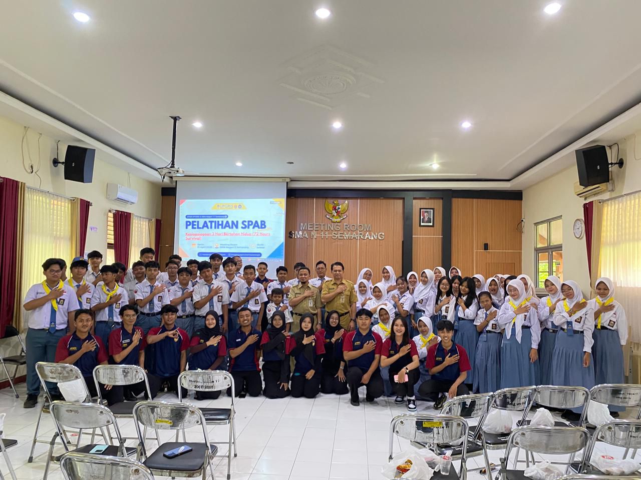 Kegiatan yang berlangsung pada Senin, 13 April 2026 ini mengusung tema “Kesiapsiagaan 3 Hari Bertahan Hidup (72 Hours Survival)”. Pelatihan dibuka oleh Pelaksana Tugas (Plt.) Kepala SMA N 11 Semarang, Eko Ardinuryadin, S.Pd., M.Pd., serta dihadiri Wakil Kepala Sekolah Bidang Kesiswaan sekaligus koordinator guru pamong, M. Noor Wachid Affandi, S.Kom.
